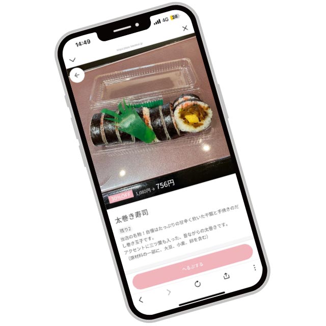 肥後銀行が運営する「かせする」は、地域のお店で出てしまう〝もったいない〟を、必要とする人につなぐサービスです。賞味期限が近い総菜やパン、予約キャンセルなどで空いてしまった飲食店の枠などをお得な価格で紹介しています。